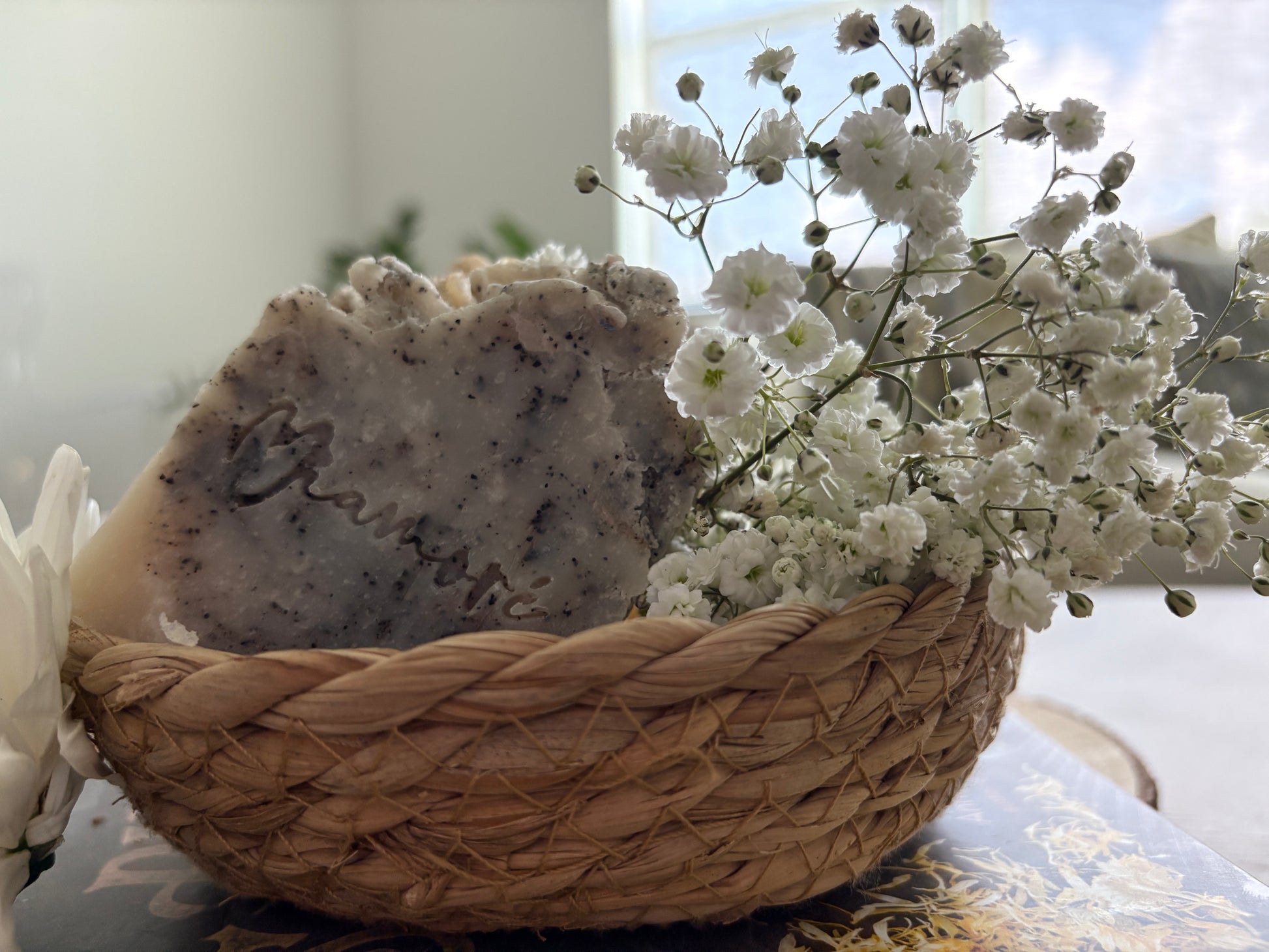 This handcrafted soap is created using the hot process method, combining olive oil, coconut oil, and castor oil for a balanced cleansing experience. Olive oil nourishes and softens the skin, while coconut oil provides effective lather and deep cleansing. Castor oil adds conditioning properties, enhancing the soap’s moisturizing effect. Together, these oils ensure a gentle yet thorough clean, suitable for daily use and various skin types.
